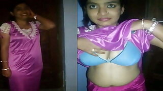Beautiful married Tamil aunty in a hot saree shows her boobs