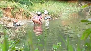 Desi village aunty filmed bathing, part 4, full hd